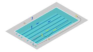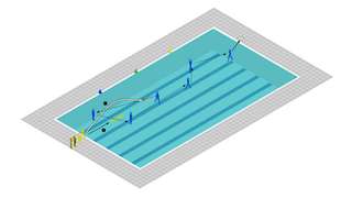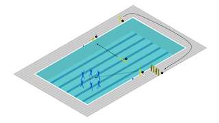Es werden zwei Teams gebildet und ein Reifen am Startblock abgelegt. Team 1 verteilt sich entlang der Bahn im Wasser, während sich Team 2 beim Startblock sammelt. Das erste Kind von Team 2 schwimmt, nachdem ein Teammitglied den Ball ins Wasser geworfen hat. Sobald der Ball im Wasser ist, passt sich Team 1 den Ball zu, wobei ihn alle einmal berührt haben müssen. Danach muss der Ball im Reifen abgelegt werden. Die Schwimmenden erhalten umso mehr Punkte, je weiter sie schwimmen konnten (Punktezonen mit Pylonen markieren).