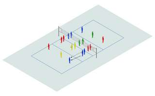 Die Teams (2:2 oder 3:3) spielen sich den Ball mit Fangen und Werfen über das Netz zu. Geht der Ball beim Gegner zu Boden, ist das ein Punktgewinn. Landet der Ball im Netz oder ausserhalb des Spielfeldes, erhält der Gegner einen Punkt. Wer punktet, erhält den Ball fürs Anspiel. Alle müssen den Ball zugespielt bekommen, bevor er wieder übers Netz geworfen wird. In dieser Zeit erledigt das Gegnerteam eine Aufgabe: