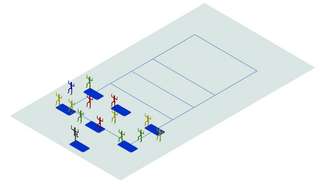 - Jedes Team hat je einen Auswechselspieler, der das Spiel leitet und gleichzeitig den Ball holt, falls dieser einmal ins Out geht. Ein regelmässiges, durch die Lehrperson organisiertes Wechseln lohnt sich hier.