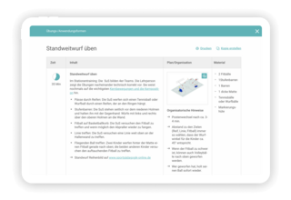 Eine weitere Stärke der Anwendung ist der Hallenplaner: Damit lassen sich Sportgeräte, Matten und sogar Spielerinnen und Spieler je nach Situation anordnen, wodurch auch Spielzüge visualisiert werden können. Du bist mehr der physische Typ? Kein Problem, alle Pläne lassen sich ausdrucken. Das gilt auch für die Lektionen. Plane die Übungssituation im Voraus und teile den ausgedruckten Hallenplan mit deinen Schülerinnen und Schülern. So gelingt das Einrichten der Übungen in der Halle schnell und unkompliziert.
